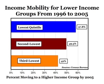 Thomas Sowell has frequently reiterated the fact that most people who are in the bottom quintile of the income spectrum tend not to stay there, and people in the top quintile of the income spectrum tend not to stay at the top. The following graphs illustrate this point clearly: